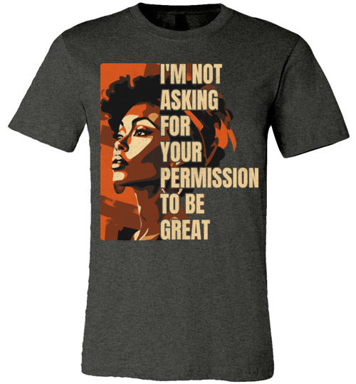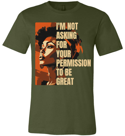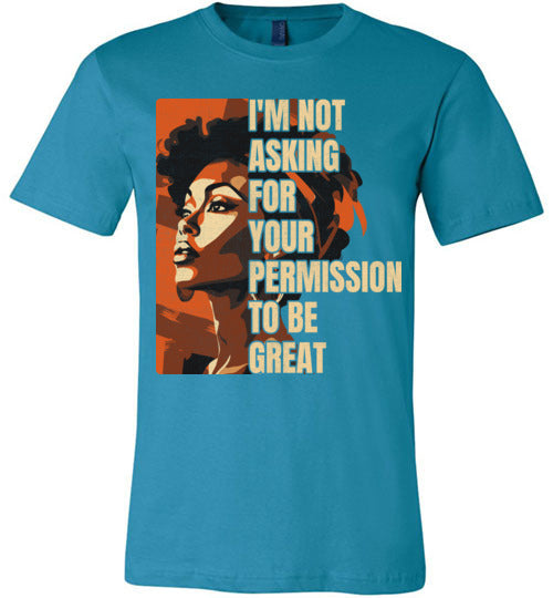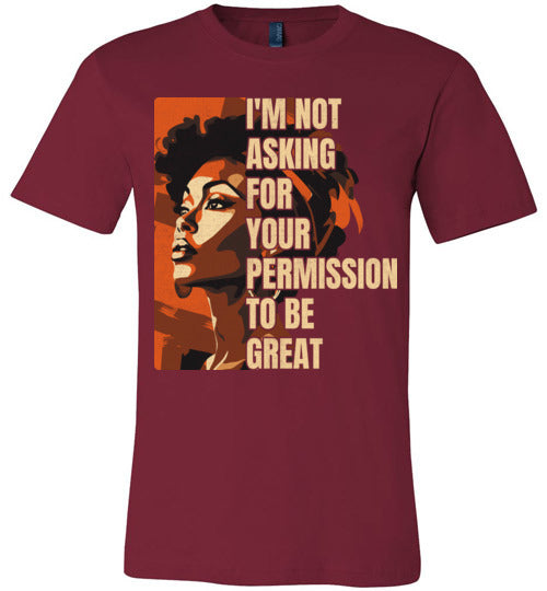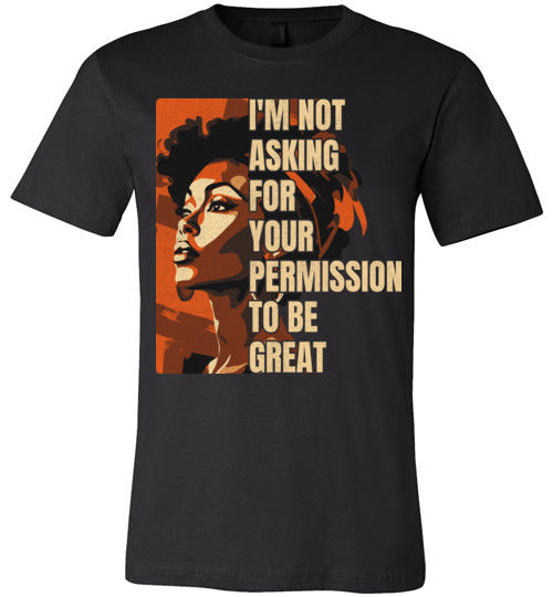 The I'm Not Asking for Your Permission to Be Great T-Shirt says everything without apology. Featuring a striking side profile of a woman with a bold afro, this design is all about confidence, self-worth, and refusing to shrink.